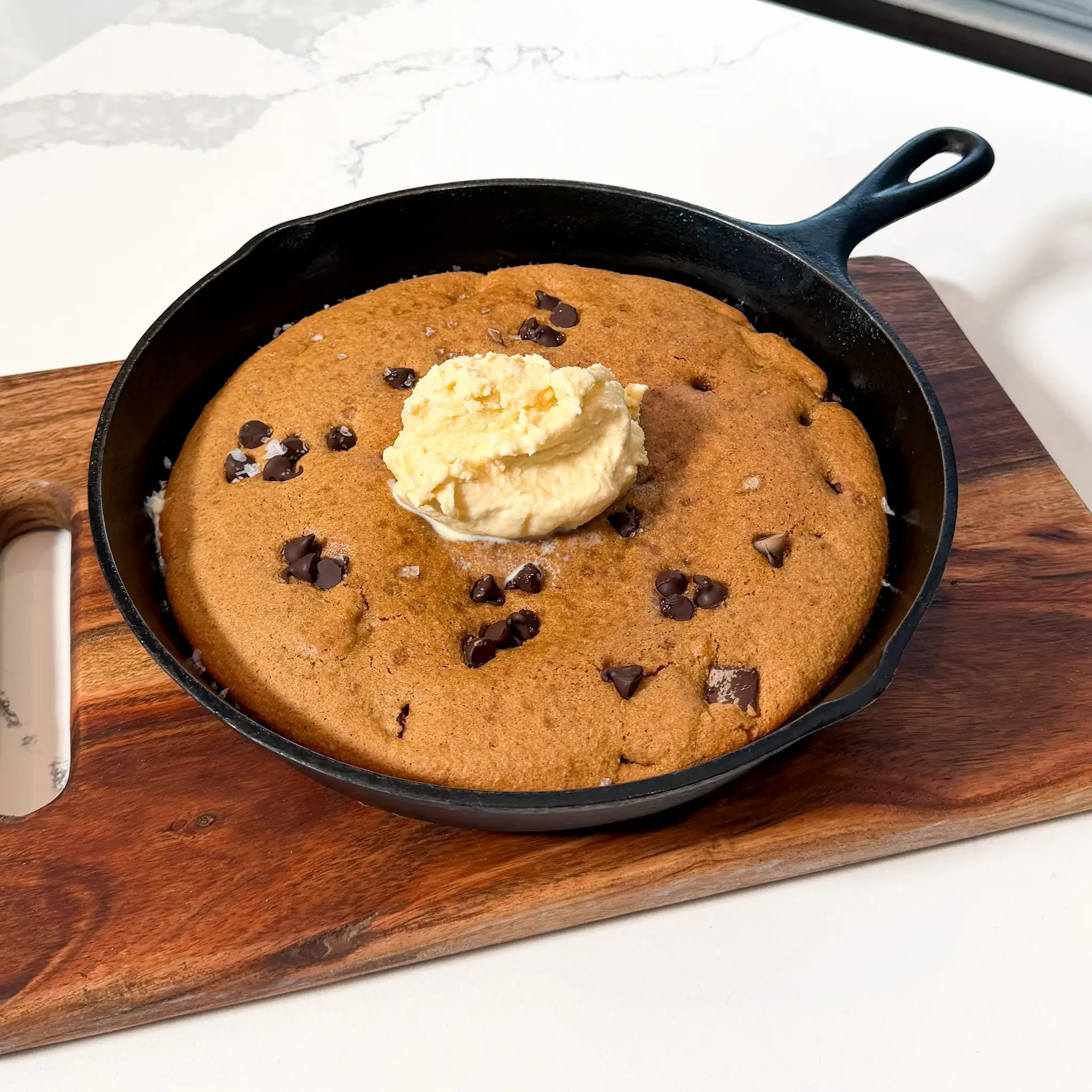 The perfect size for a thick, gooey cookie skillet with golden edges and a molten center.